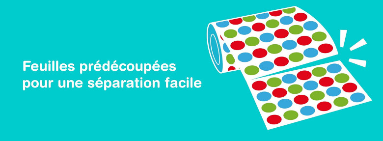 Les gommettes font 2 cm de diamètre, donc faciles à manipuler, et ce qui est super, c’est qu’elles peuvent être décollées et recollées par les élèves en cas d’erreur.