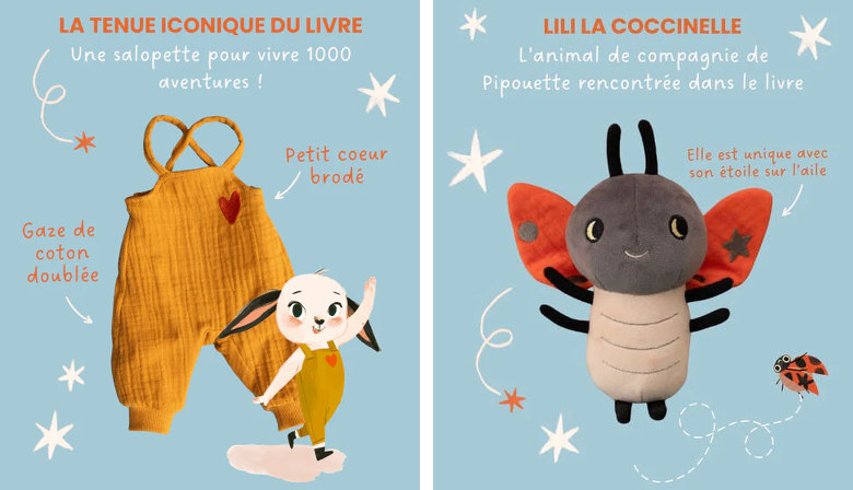Si vous avez une peluche Pipouette, vous pouvez même vous procurer la tenue comme dans le livre ainsi que le doudou coccinelle !!! Le top du top ! Rendez-vous sur le site de Pipouette si cela vous intéresse. (Et si vous commandez sur l’e-shop, vous pouvez avoir -10% en utilisant mon code promo BAMBOU10 !)