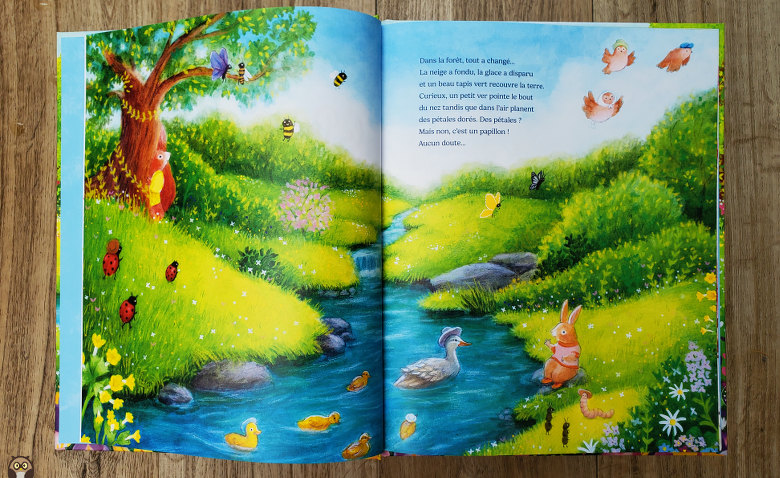 Cet album célèbre en effet le renouveau printanier avec des illustrations magnifiques, lumineuses et poétiques.