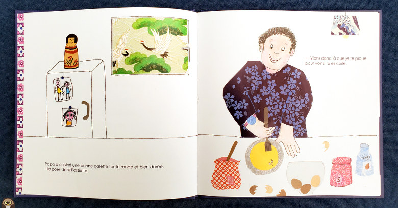 Les illustrations de Véronique Komai sont agréables, réalisées à partir de collages de papiers japonais colorés.