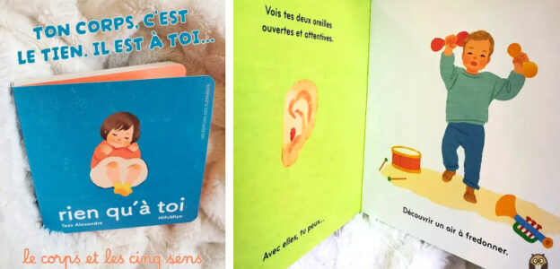 C’est un ouvrage utile pour mettre des mots sur les habilités motrices et sensorielles. « Avec ton corps, tu peux courir, danser, dormir, jouer, chanter… »